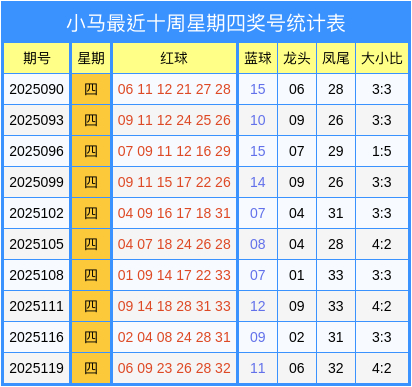 蓝球分析:最近十周星期四蓝球分布在07-15区间,其中蓝球号码大小比为7:3,本周星期四看好小数蓝球走热,关注蓝球号码02。