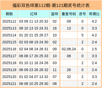 上期福彩双色球第2025121期奖号为:06、08、10、25、29、30 + 08,红球奇偶比为2:4,重号未出,开出连码29,30。