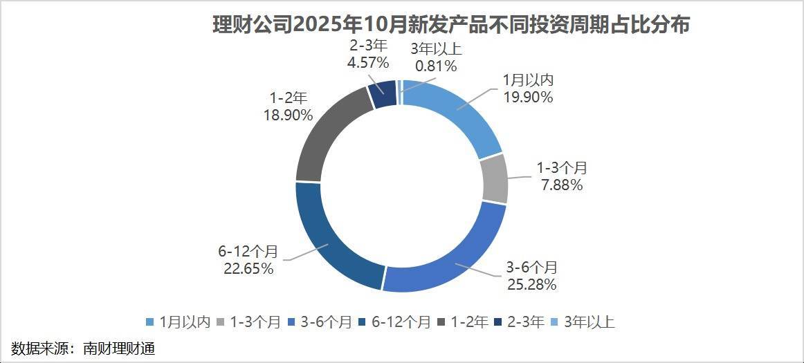 从投资性质上看,理财公司2025年10月新发产品仍以固收类产品为主,产品数量占比达到98.7%。不过,理财公司也在坚守稳健根基的基础上,抓住股票市场上行周期机会,布局混合类产品和权益类产品。
